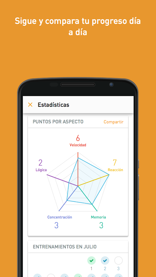 - Pruebas científicas y regulares que demuestran el nivel de forma y el progreso de tu cerebro
