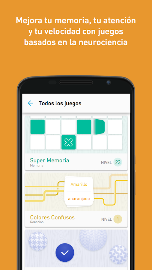 Un cerebro fuerte lleva a una vida más feliz. Con más de 4 milliones de usuarios a nivel mundial en todas las plataformas, Memorado es el gimnasio líder para el cerebro: ofrece diversión y entrenamientos personalizados que permiten estimular la memoria, la concentración y la reacción del usuario. ¡Elige entre más de 570 niveles en 19 juegos basados en la neurociencia, que han sido diseñados para ayudarte a sentirte cada día más listo!